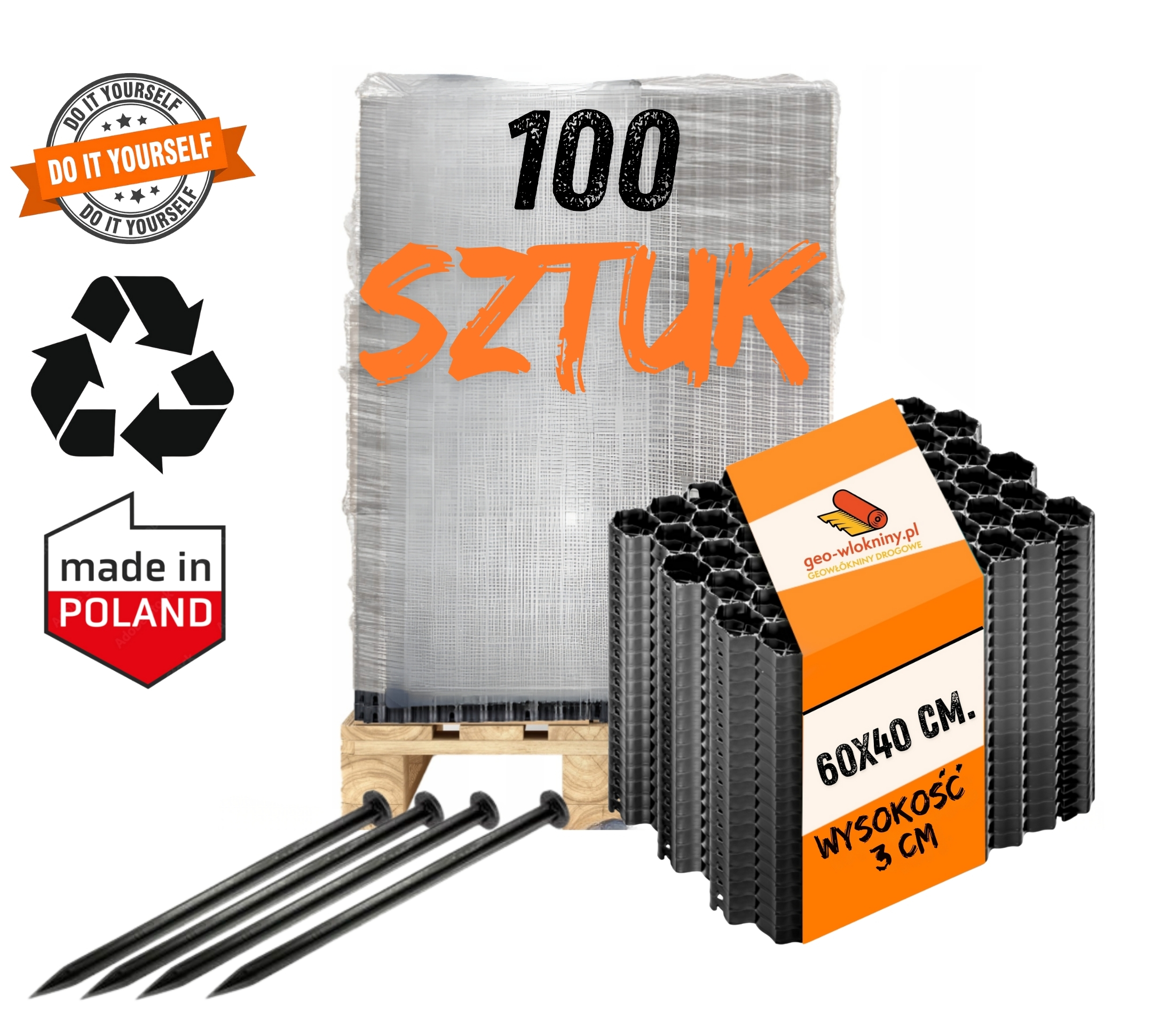 🟠materiał: produkt wykonany z tworzywa sztucznego uzyskanego w 100% z recyklingu